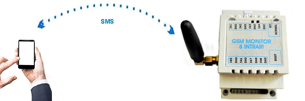 Dispozitiv pentru monitorizare si transmitere a starilor pentru 8 intrări, prin mesaj SMS