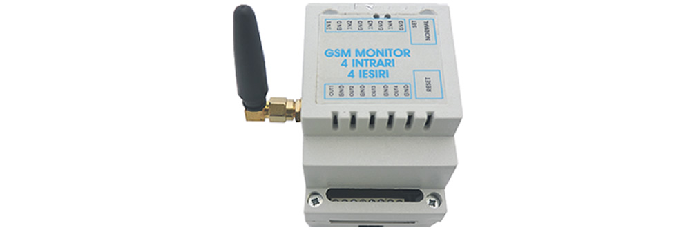 Dispozitiv de monitorizare și transmitere a stărilor pentru 4 intrări și comanda a 4 ieșiri prin mesaj SMS