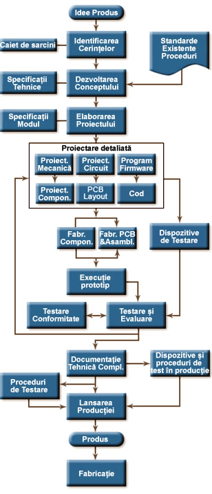 La realizarea acesteia proiectantul trebuie să analizeze parametrii componentelor din foile de catalog în paralel cu amplasarea și asignarea componentelor, conectarea acestora în circuit, respectarea condițiile impuse prin caietul de sarcini, interacțiunea dintre componente (în special timpii și încărcarea), capsulele componentelor, precum și conectarea optimă a pinilor conectorilor, denumirea semnalelor și magistralelor, editarea componentelor în biblioteci, ... Circuitul va începe de multe ori pe hârtie și se finalizează cu proiectarea asistată de calculator (CAD).
